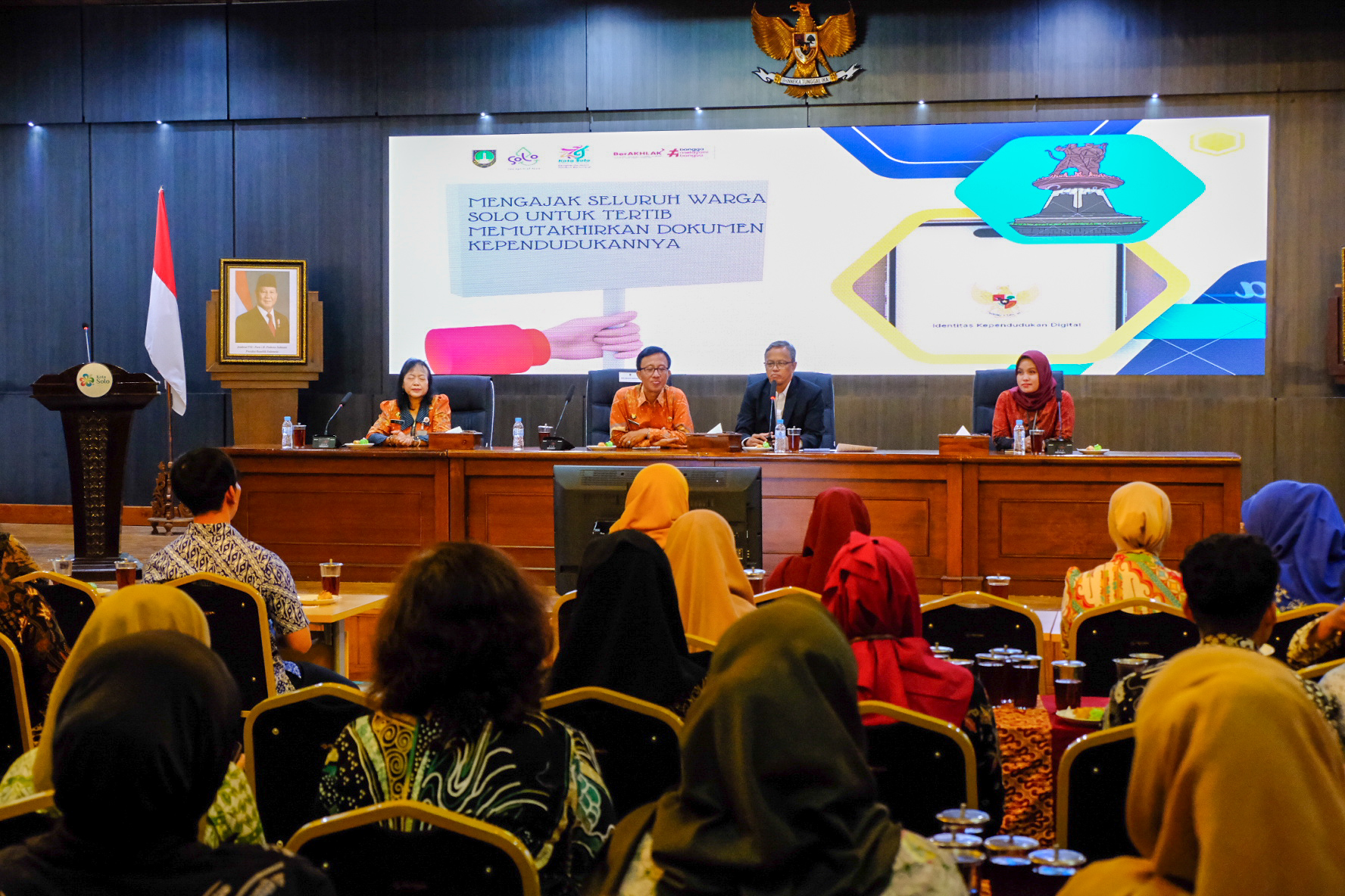 Kepala Disdukcapil Surakarta, Drs. Ag. Agung Hendratno, M.Si., dalam sambutannya menyampaikan bahwa dukungan dan sinergi para mitra telah memberikan dampak signifikan terhadap peningkatan capaian kepemilikan dokumen kependudukan di Kota Surakarta. Beliau juga mengapresiasi komitmen kolaboratif yang terus menguat untuk menghadirkan pelayanan yang prima dan membahagiakan masyarakat.